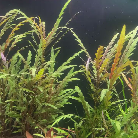 Hygrophila Pinnatifida has fern shape leaves with different shade of colors from bronze to reddish green.